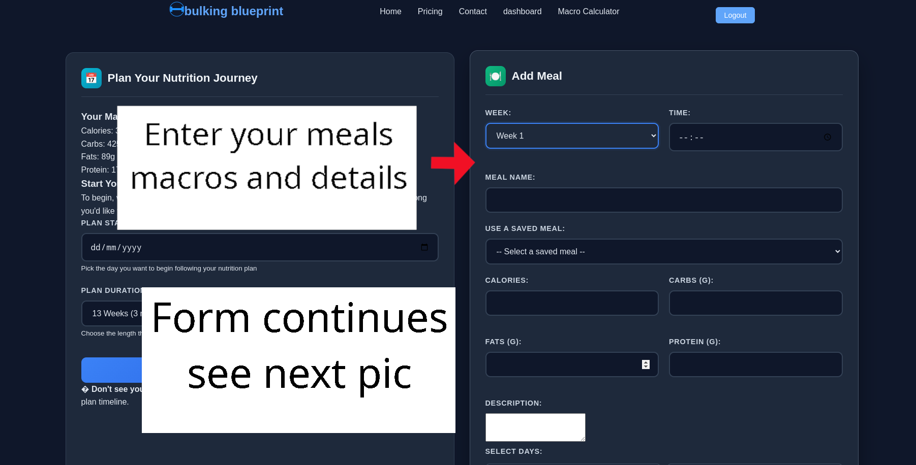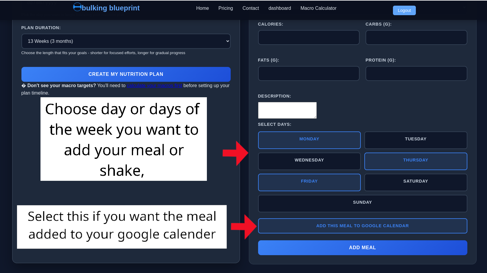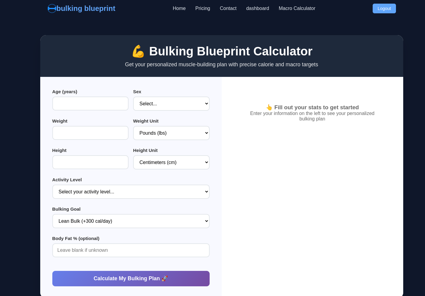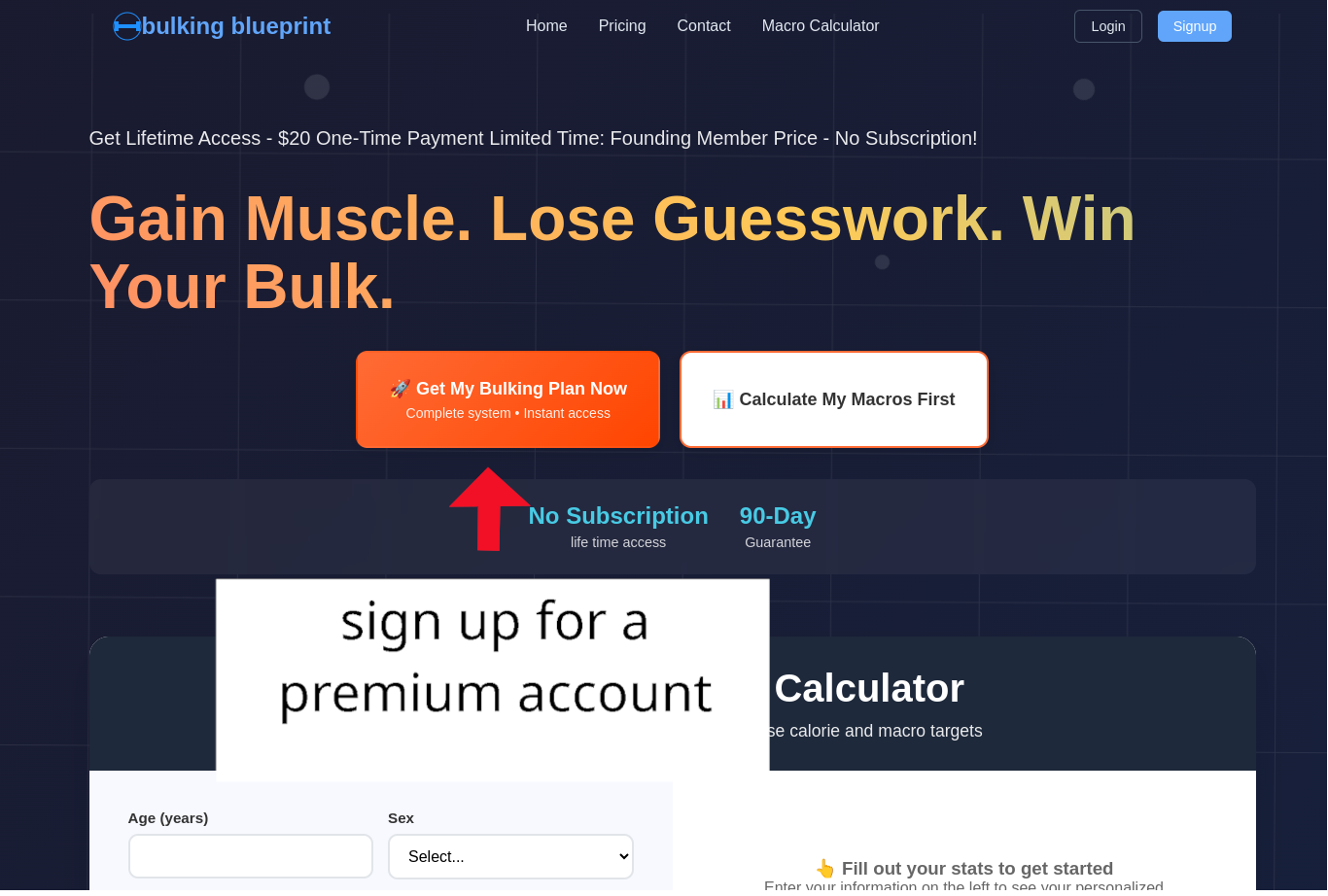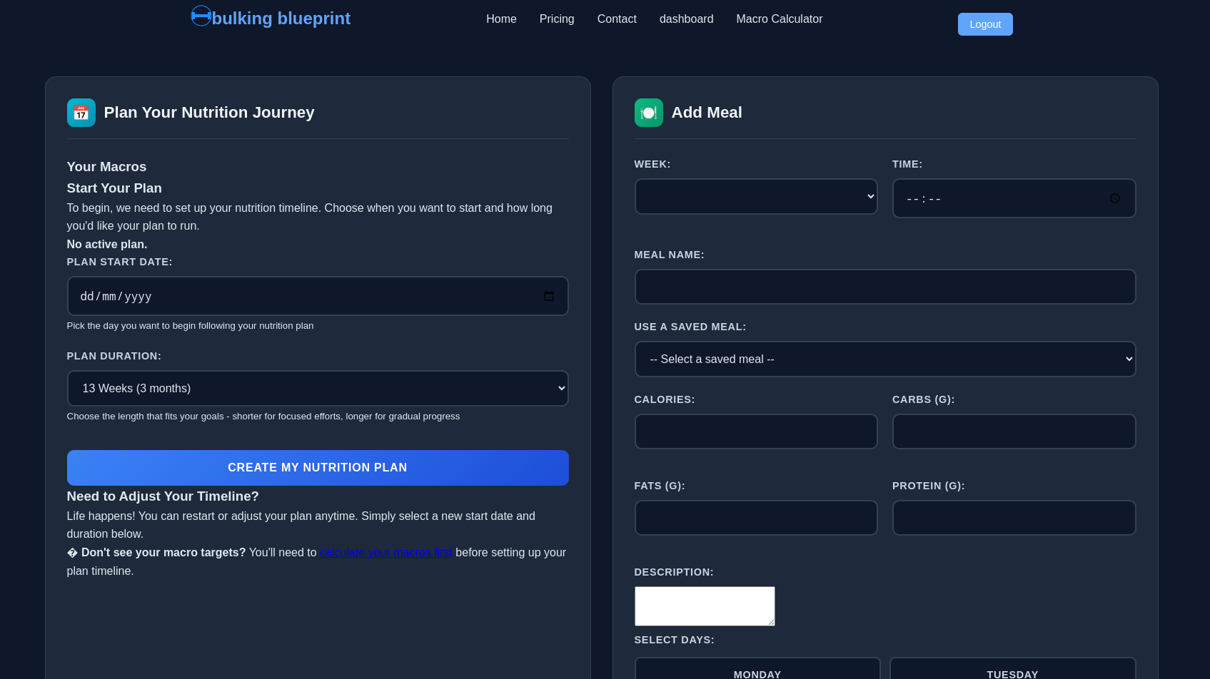 Start your bulking journey by upgrading to premium access. This unlocks all the powerful features you need to create personalized meal plans and track your progress.